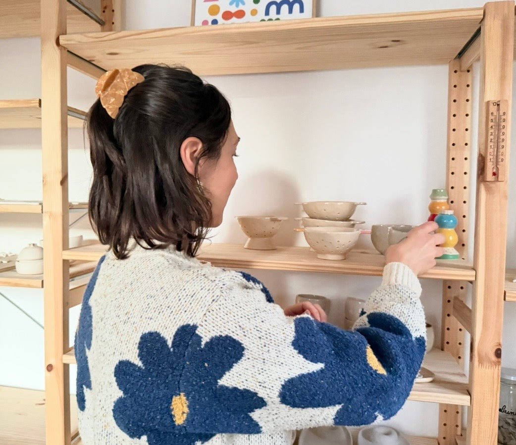 Aujourd’hui, je crée des pièces uniques, en grès et porcelaine, empreintes de tout ce que j’ai appris en chemin. Chaque pièce est une tentative douce de capturer un souvenir, une sensation, un éclat d’enfance... durable dans le temps.
