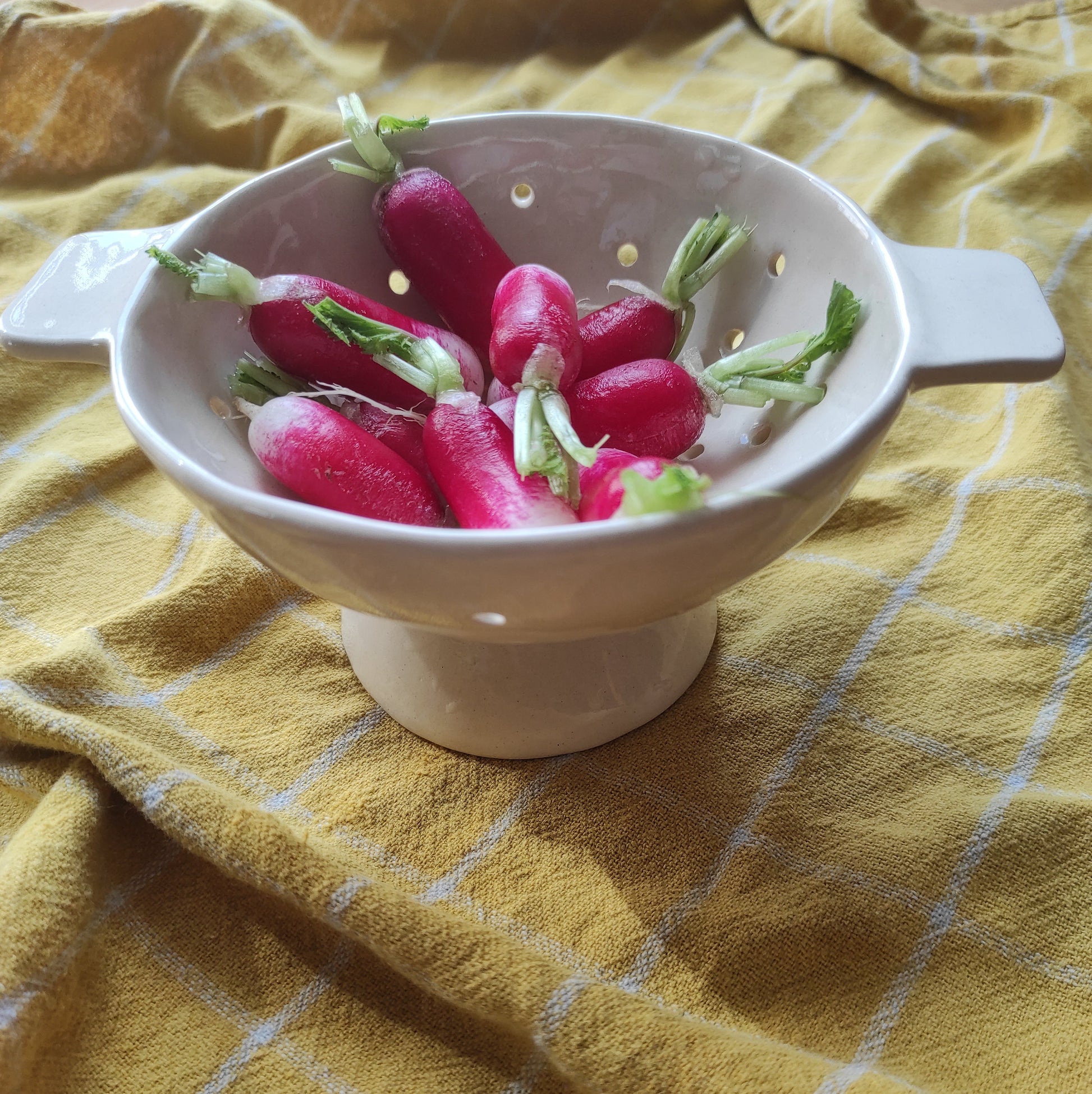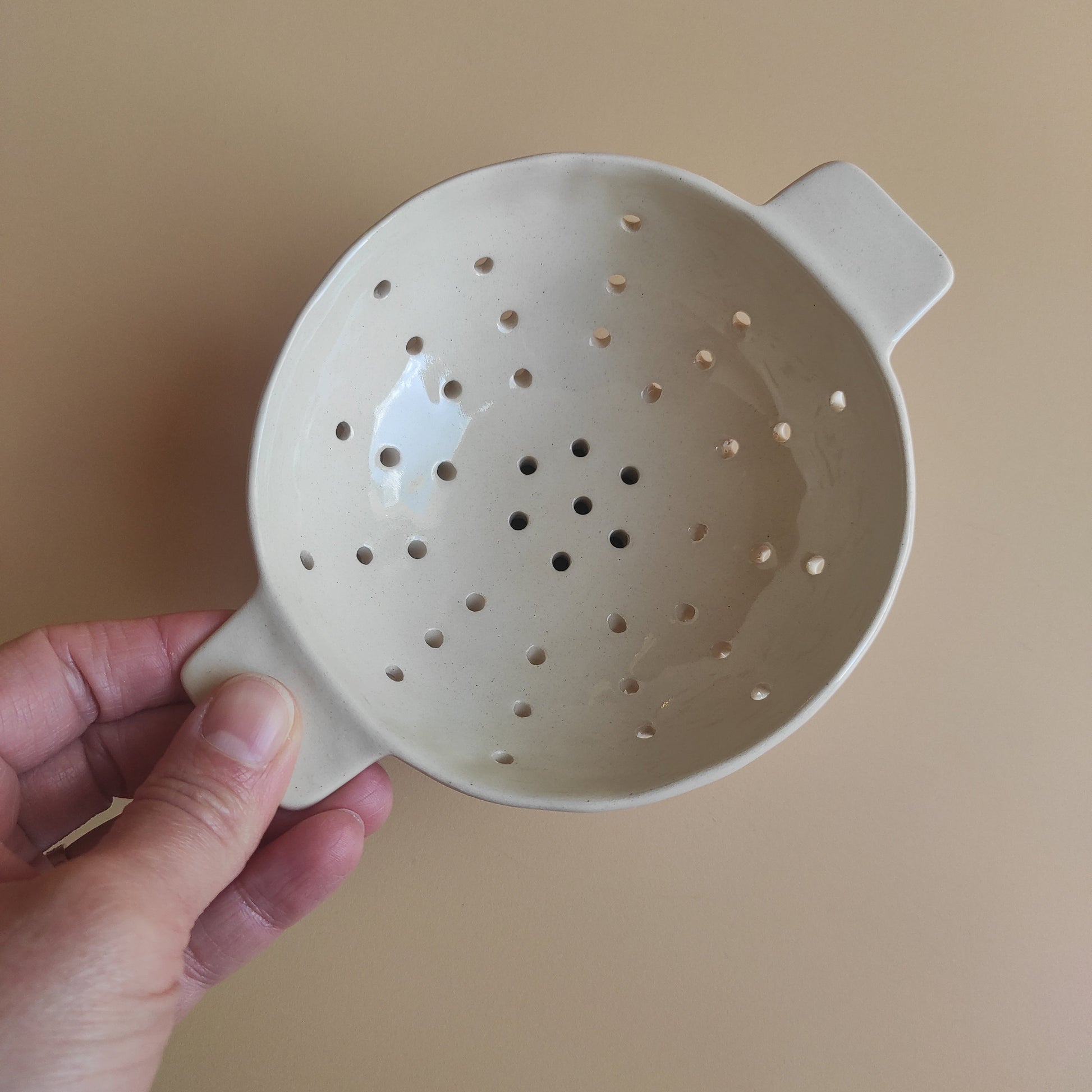 Chaque passoire est façonnée entièrement à la main au pincé. Elles sont toutes uniques, différentes et imparfaitement rondes ;)